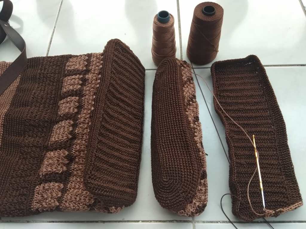 Atau, saya tidak menyampaikan kepada yang pesan lalu pembuatan tas tajut ini saya hentikan dan membuat baru, toh ini nanti bisa dibikin motif lain. Saya buat tas sesuai pesanan agar pelanggan puas. Bimbang pun muncul.