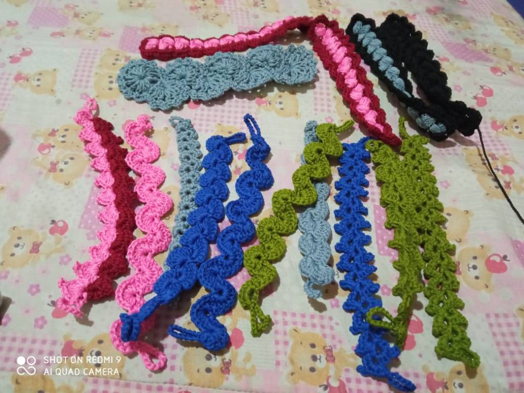 Aneka macam motif rajutan tinggal memilihnya, dengan aneka warna-warni sesuai selera, dan yang pasti biasanya disejajarkan dengan warna hijab atau warna masker, bahkan mungkin juga dengan warna pakaian sekalian.