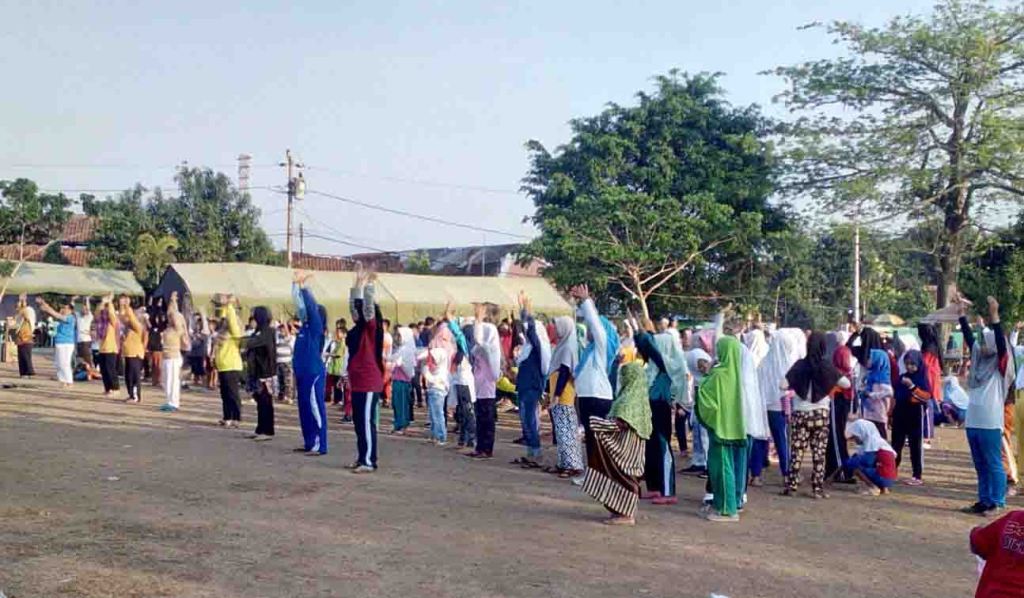 Semangat pagi dengan senam pagi pada kegiatan perkemahan santri TPQ se Kecamatan Candisari Kota Semarang di lapangan asrama TNI AD Mrican