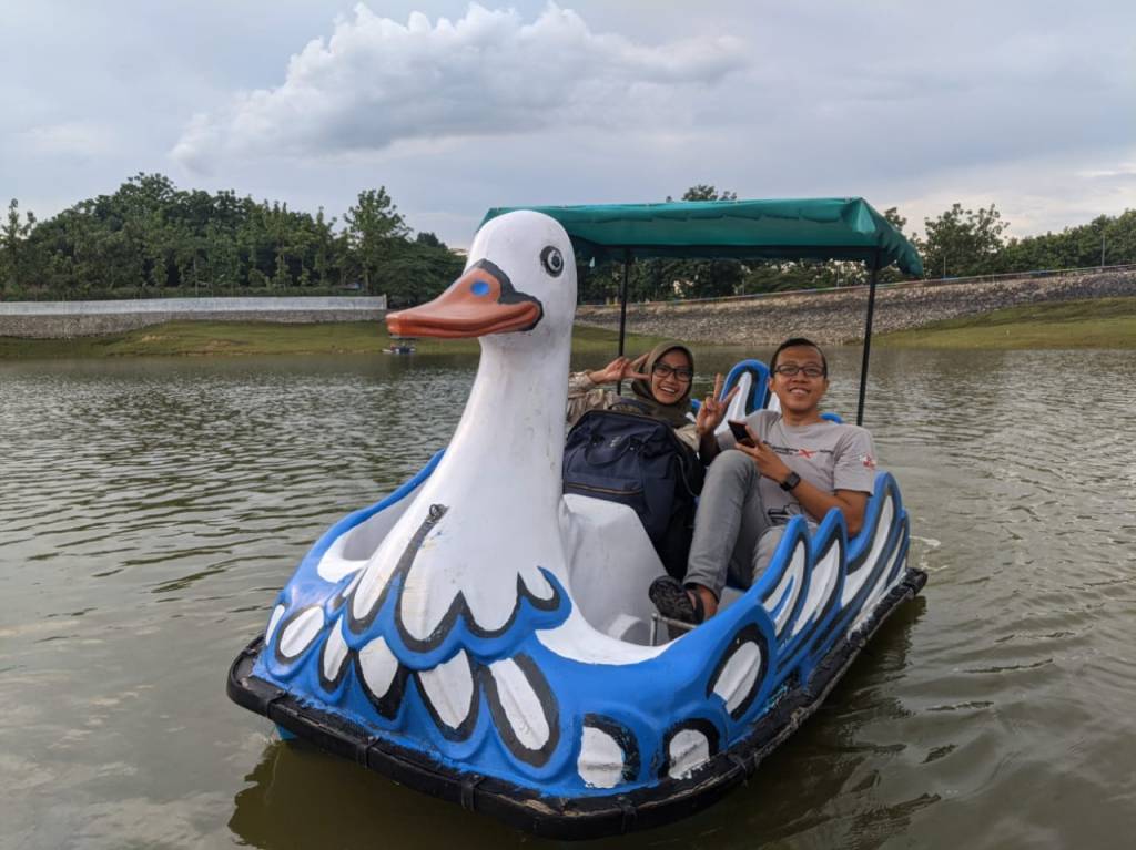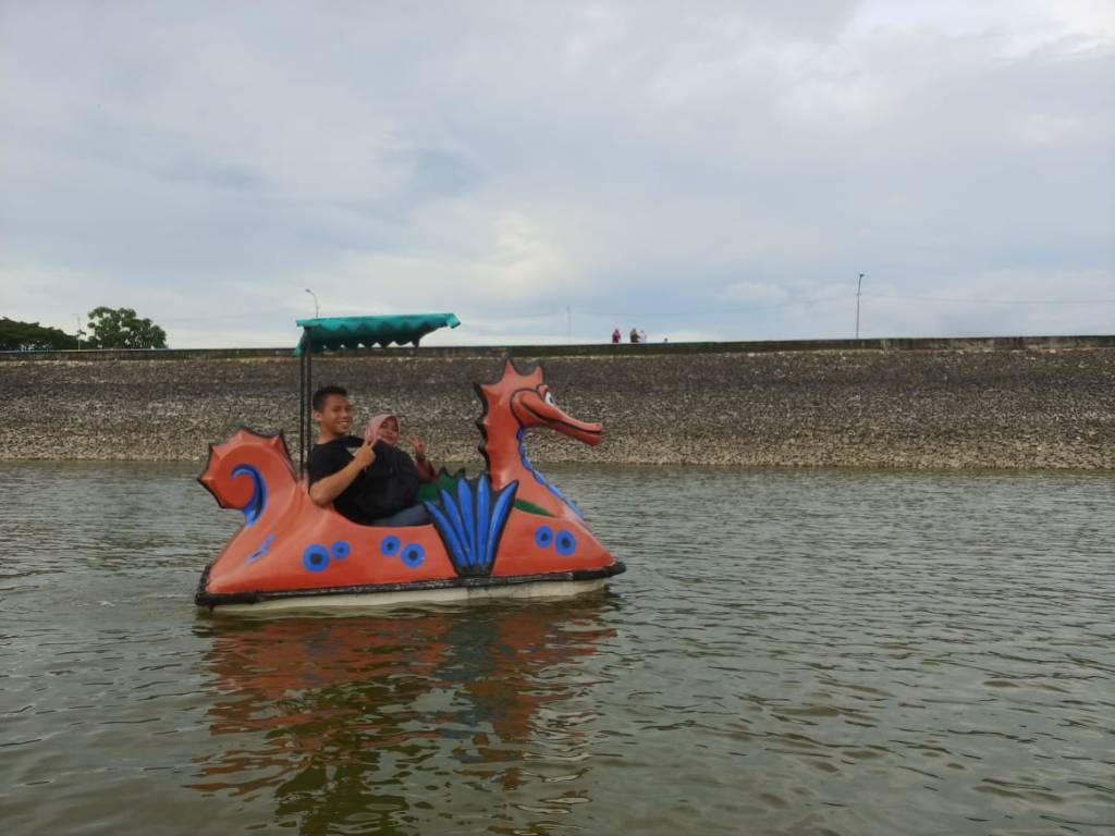 Saat bermain dalam air, sangat santai dan menikmati suasana, terlebih sepeda airnya ada atap penutup kepala, sehingga tidak terlalu panas saat terik matahari.