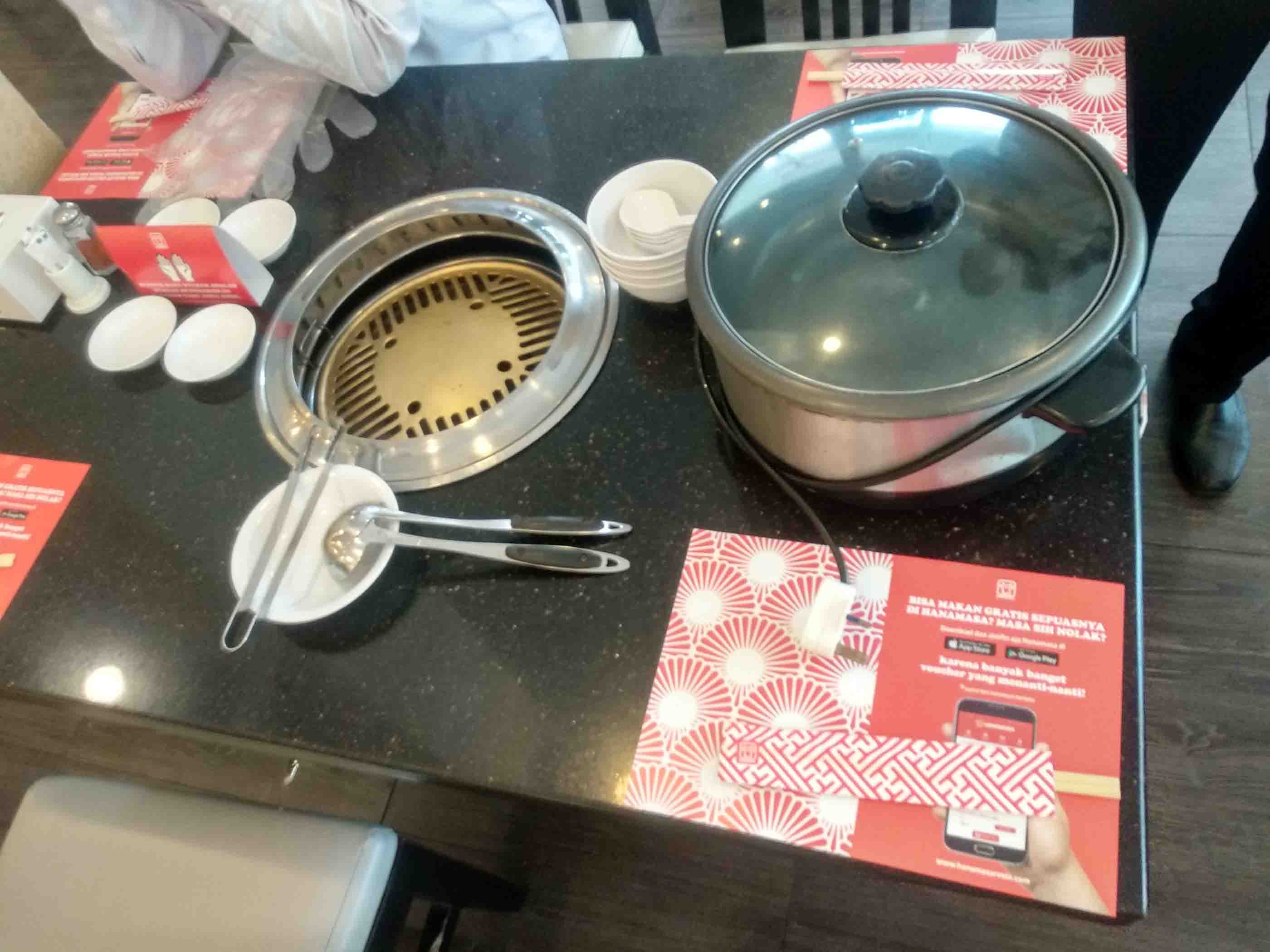 Bukan hanya mengganti alat, petugas resto Hanamasa membantu kami mengambilkan daging dan memasakkan untuk kami.