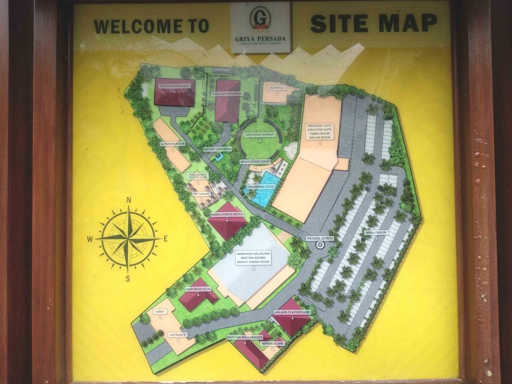 Saat kita memerhatikan peta dibawah ini, fasilitas dari hotel termasuk lengkap. Jika kita tidak ingin keluar hotel dan ingin lari pagi, kita bisa berkeliling di area hotel.