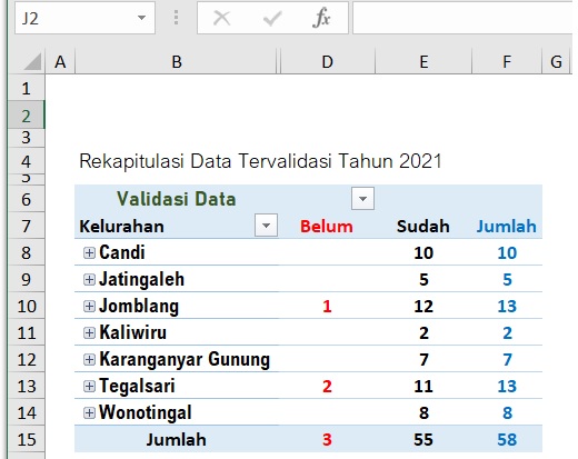 Rekapitulasi *DataTervalidasi* Tahun 2021