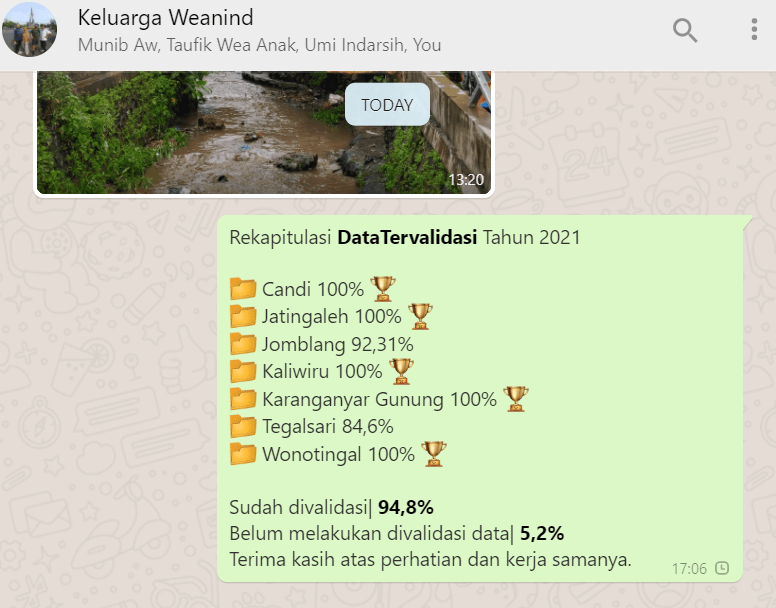 Kita bermaksud menampilkan informasi di aplikasi WA Grup terkait dengan prosentase tersebut, sehingga yang kita pikirkan adalah informasi seperti apa yang akan ditayangkan.