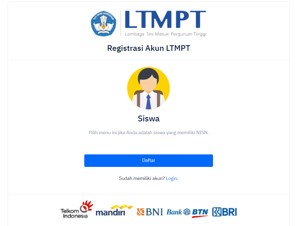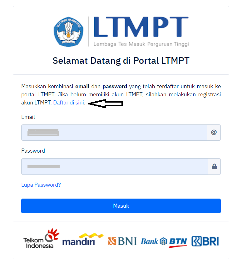 c | melakukan registrasi Akun LTMPT melalui klik Daftar di sini.