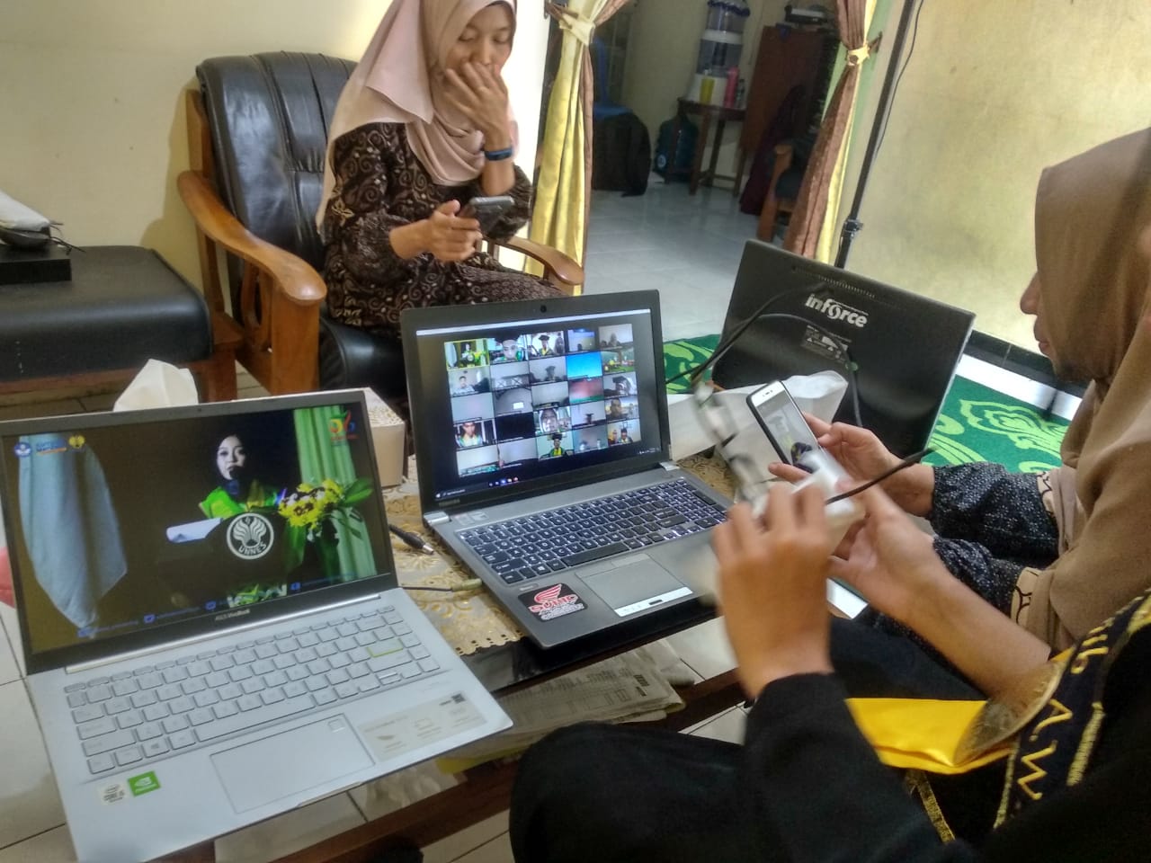Malam sebelum pelaksaan sudah menyiapkan layar yang akan digunakan untuk upacara daring wisuda, tujuannya agar esok pagi langsung siap.
