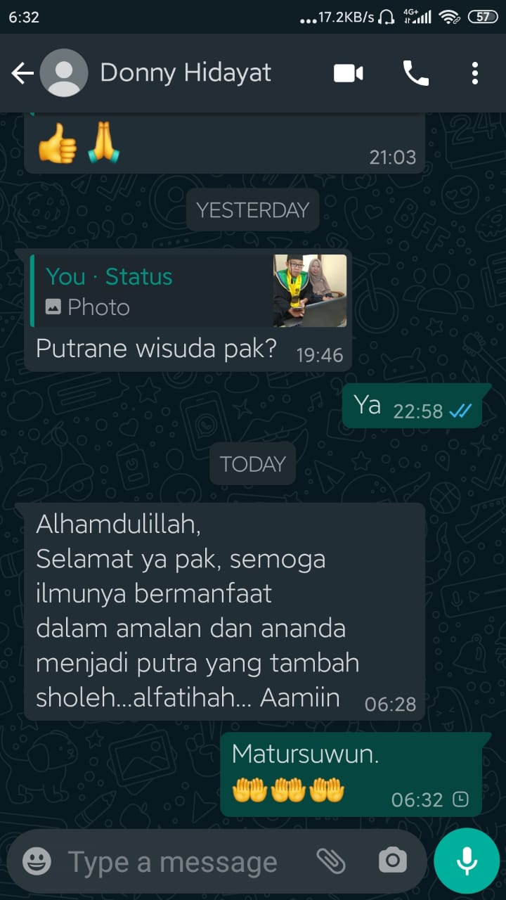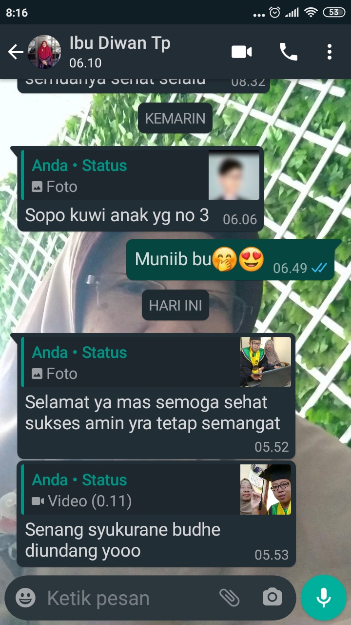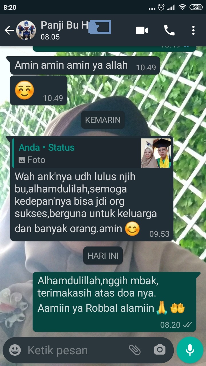 Ucapan selamat, alhamdulillah, datang silih berganti, terutama dari kerabat dan teman dekat, setelah kami mengunggah status di medsos, dan tentunya dari link kabar dari blog Kissparry, dan banyak juga yang menyampaikan secara langsung saat berjumpa.