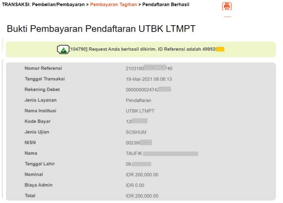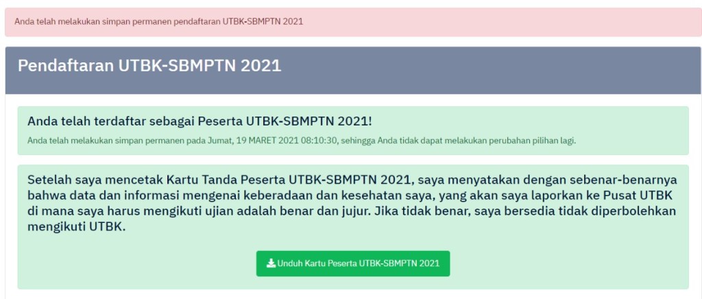 Setelah melakukan pembayaran, maka tidak terlalu lama, Karta Peserta sudah dapat diambil. Jangan mengambil di pusat UTBK, tetapi mengambilnya secara online atau Unduh Kartu Peserta UTBK-SBMPTN 2021.