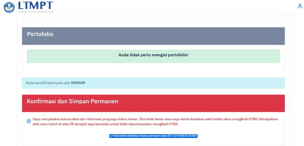 Simpan Permanen data pendaftaran UTBK-SBMPTN dilakukan saat sobat sudah yakin tentang data yang dimasukkan termasuk pilihan program studi.