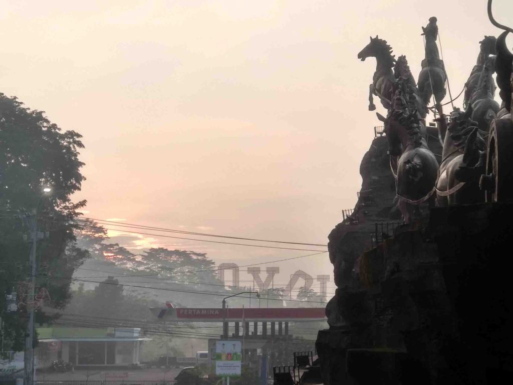 Dari mengisi bahan bakar di SPBU Mojosongo Teras, kemudian setor tunai di ATM BNI Kota Boyolali maka tepatlah mampir ke Patung Arjuna Wijaya Simpang Lima Boyolali Kota jika berangkatnya selepas Subuh atau sekitar pukul 05 pagi.