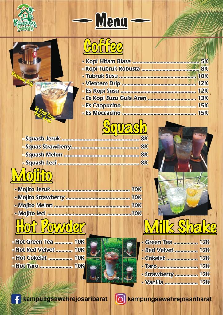Kampung Sawah terletak di area sawah dan kebun, Rejosari Barat, Kecamatan Tersono, Kabupaten Batang. Tempatnya nyaman ditepi sawah, dengan pemandangan ala pedesaan.