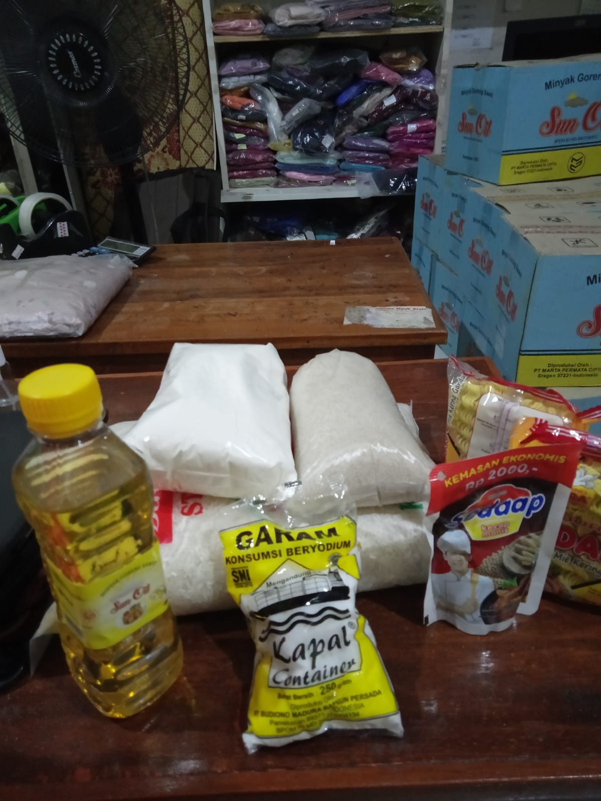 Paket bantuan sembako yang dibagikan kepada seluruh asatidz berupa beras, gula, minyak goreng, kecap kecil, garam yudium, mie, dan tepung terigu. Ya… ini dari kita untuk kita, tuturnya.