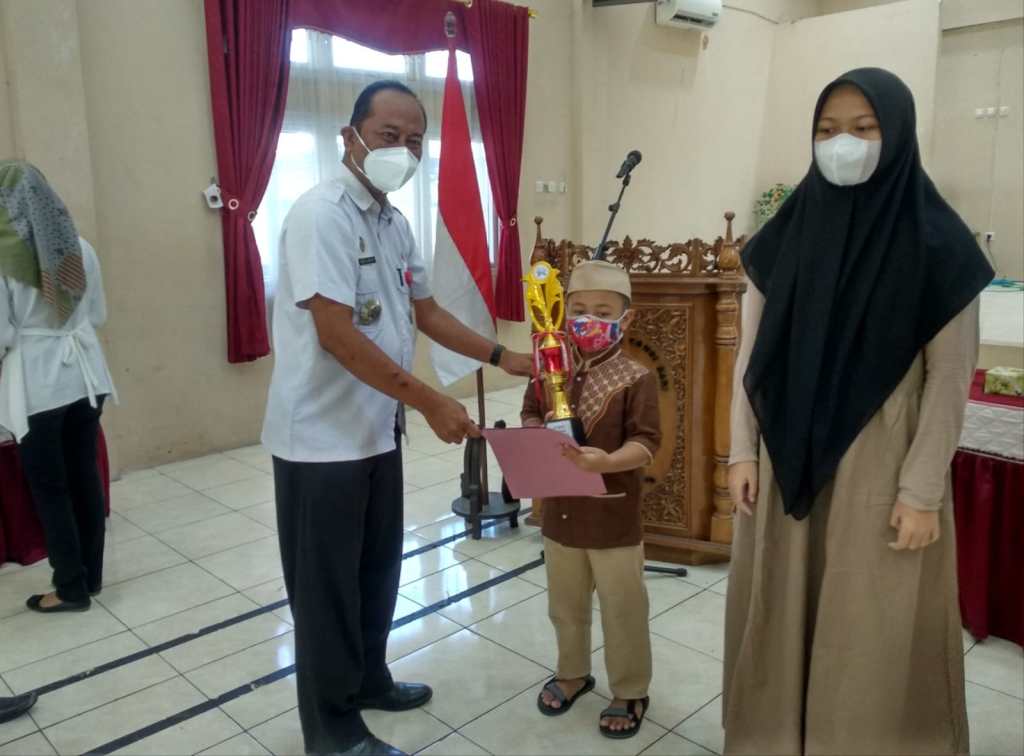 Camat Candisari Kota Semarang, Moelyanto, S.E., M.M. memberikan langsung piala dan piagam kepada pemenang lomba tartil tingkat SD/MI pria, yang dimenangkan oleh Zaky Mirza Alfarizi dari SD Wonotingal kelas II, dan bertempat tinggal di Kelurahan Tegalsari.
