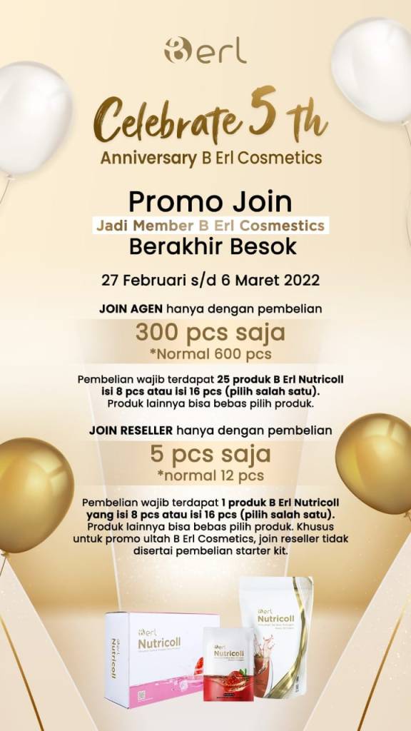 Dalam rangka Celebrate 5th Anniversary B Erl Cosmetics menghadirkan promo Join Member khusus Reseller dan Agen.