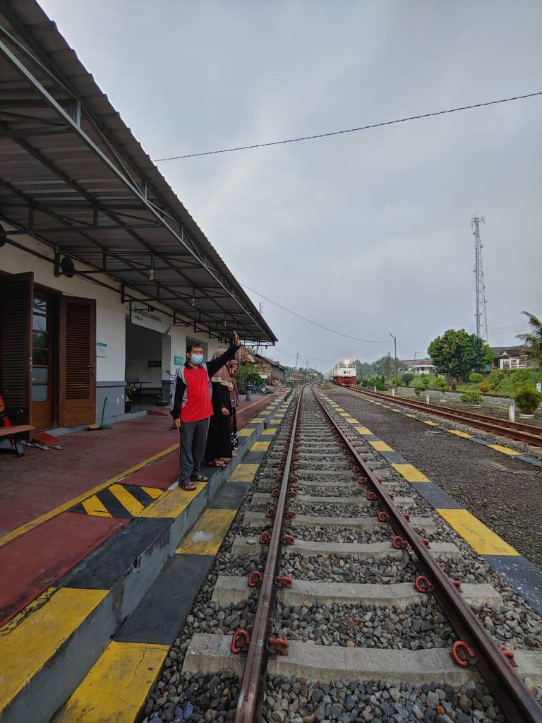 Saat mendengar itu kemudian suami saya memberi kabar kepada Alif yang ada tempat yang jauh dari statiun, untuk minggir akan ada kereta api yang akan lewat.