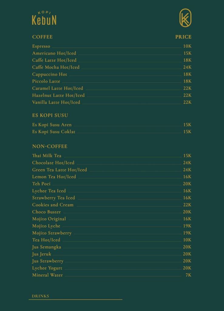 Kopi Kebun restoran ini buka mulai pukul 07:30 dan tutup pukul 21:00 waktu setempat, pada saat kondisi normal.