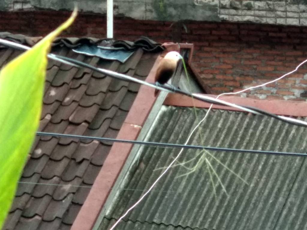 Belum tahu namanya burung ini, ketika saya perhatikan sedang membawa bahan sarang dan hinggap di kabel listrik di depan rumah.