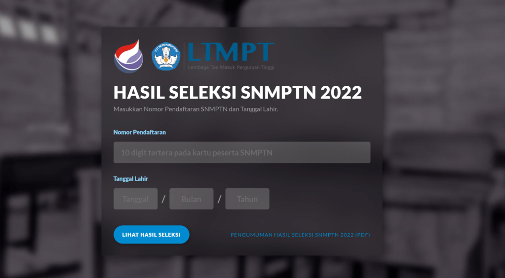 Adapun laman resmi pengumuman hasil seleksi SNMPTN 2022 dapat diikuti tautan berikut ini : https://pengumuman-snmptn.ltmpt.ac.id/