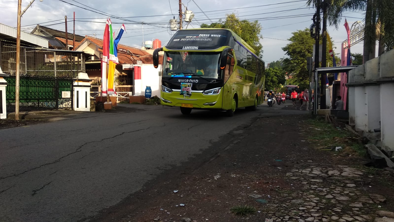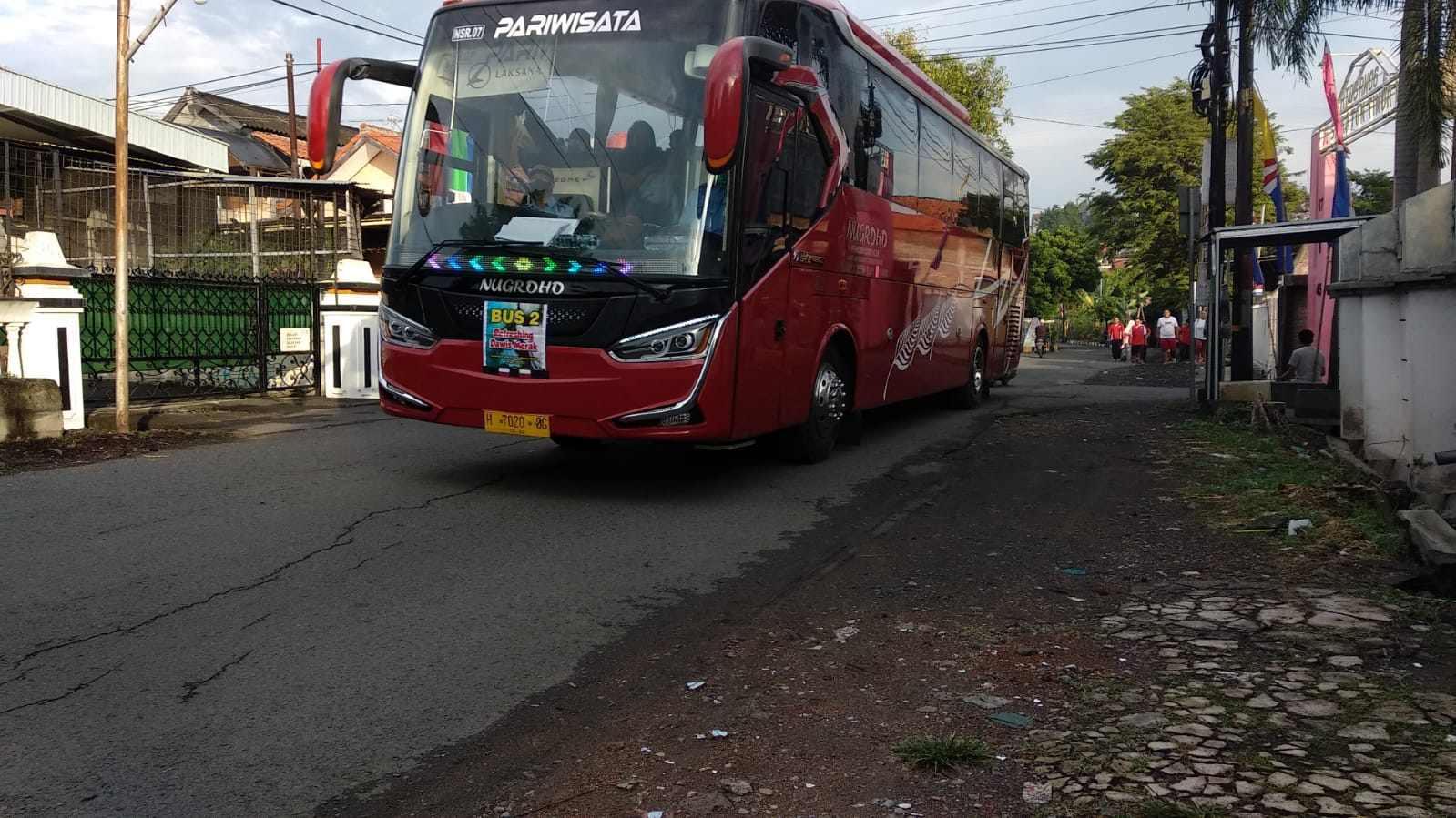 Rombongann terdiri dari dua bus pariwisata (besar), ya karena memang wisata keluarga dari kelompok Dasa Wisma (Dawis) Mekar.
