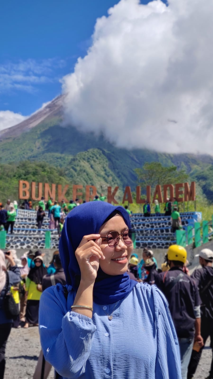Langit biru dan kepulan asap dari puncak Merapi menjadi pemandangan yang sangat indah dan mengesankan.