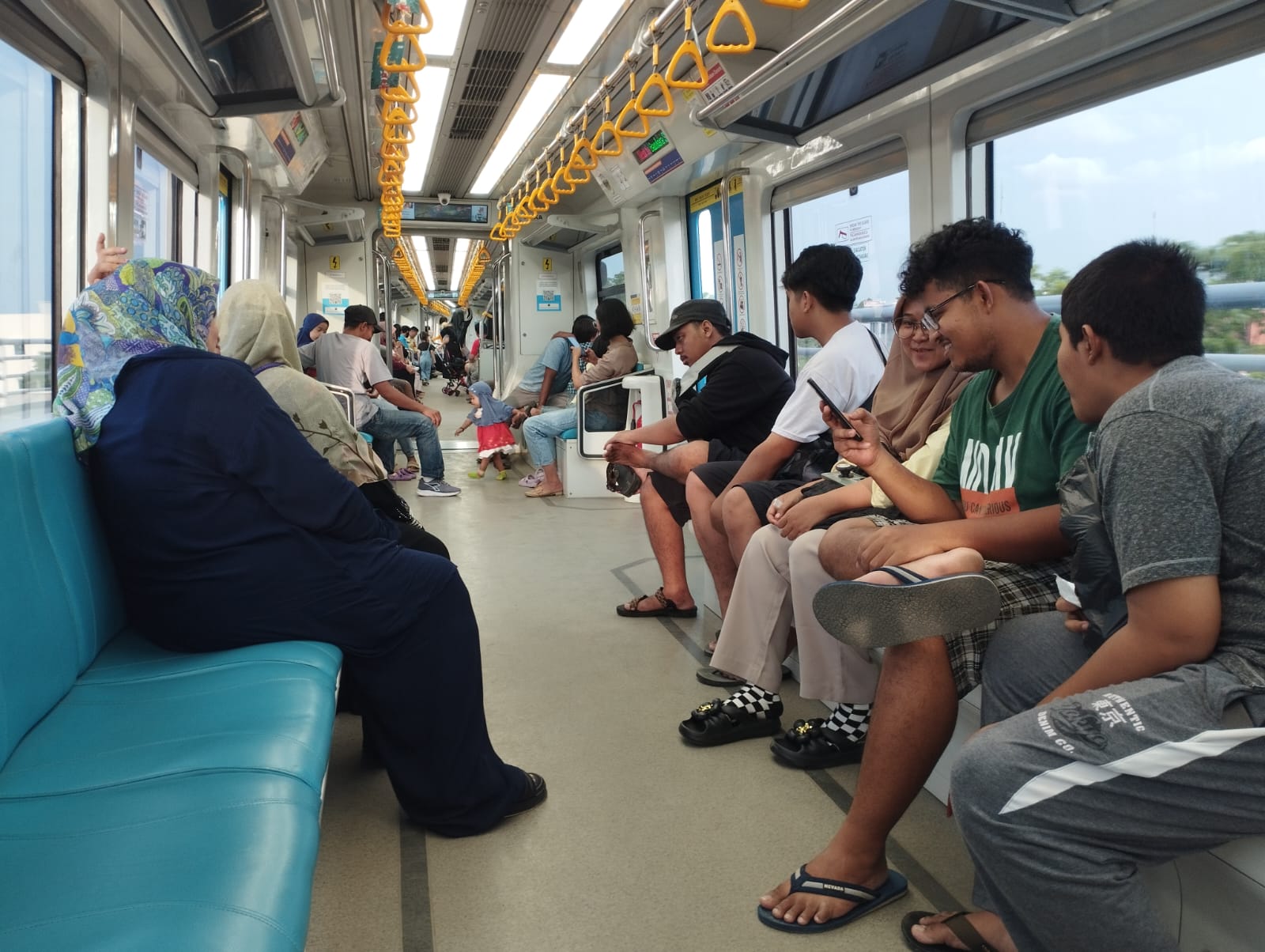 LRT (Lintas Rel Terpadu – Light Rail Transit) Palembang yang dikabarkan sepi, ternyata masih diminati oleh masyarakat setempat atau pun pendatang, apakah karena saat ini libur Nataru (Natal dan tahun baru, 28/12).