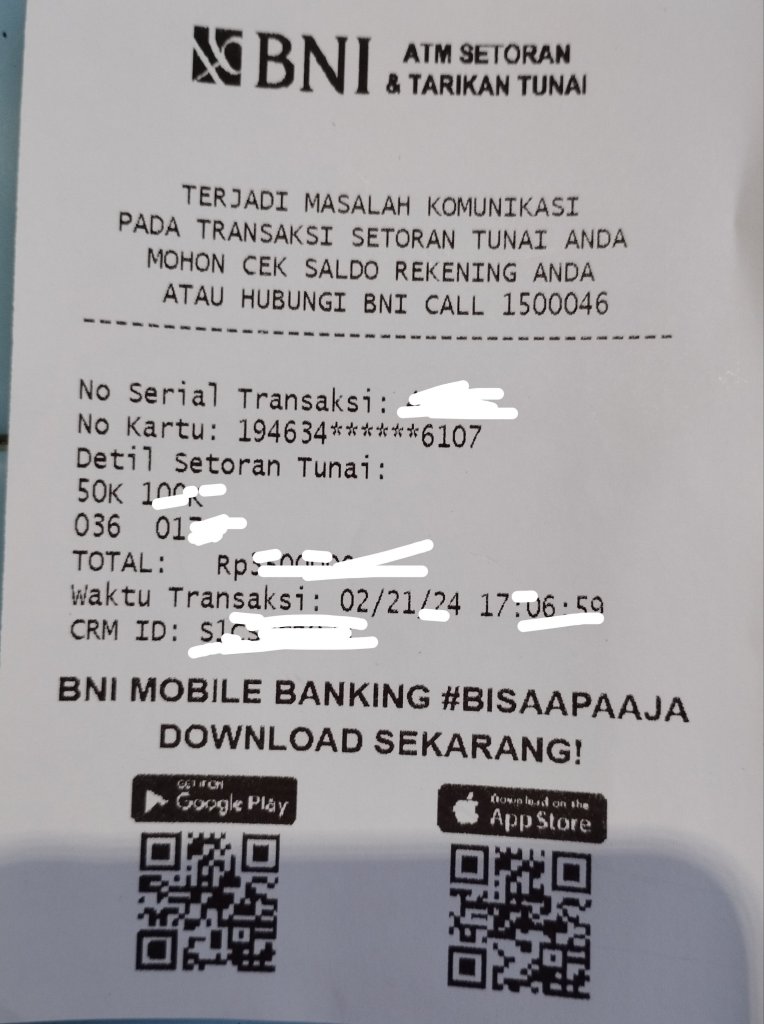 Pengalaman Setor Tunai, Uang Masuk dan Saldo Rekening Tidak Masuk