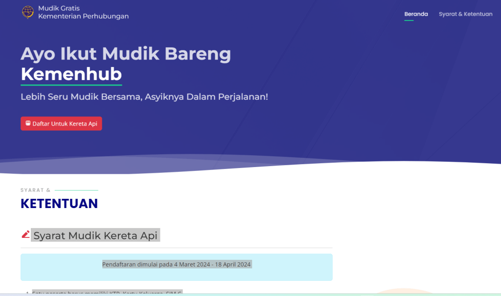 Satu komentar pada “Kemenhub Membuka Mudik Gratis 2024 (1445) Mulai 4 Maret Besok | Inilah Link Mudik Gratis 2024 Jalur Kereta Api”