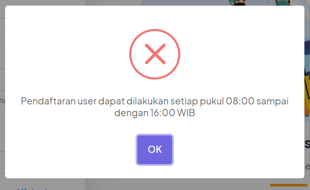 Pendaftaran user hanya dilakukan pada jam kerja efektif, yaitu pukul 08:00 WIB sampai dengan 16:00 WIB.