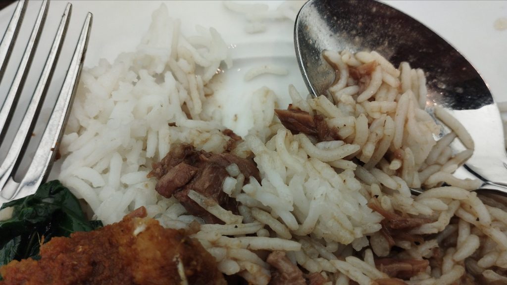 Bentuk nasinya dari beras khas timur tengah, panjang-panjang, tidak seperti beras lokalan Indonesia.