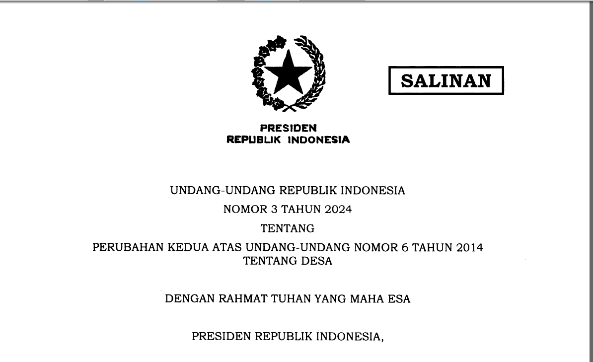 Dengan berbagai perubahan tersebut, UU No 3/2024 tentang Desa ini diharapkan dapat membawa desa menjadi lebih maju, mandiri, demokratis, sejahtera, dan tetap mampu melestarikan nilai-nilai adat dan budayanya.