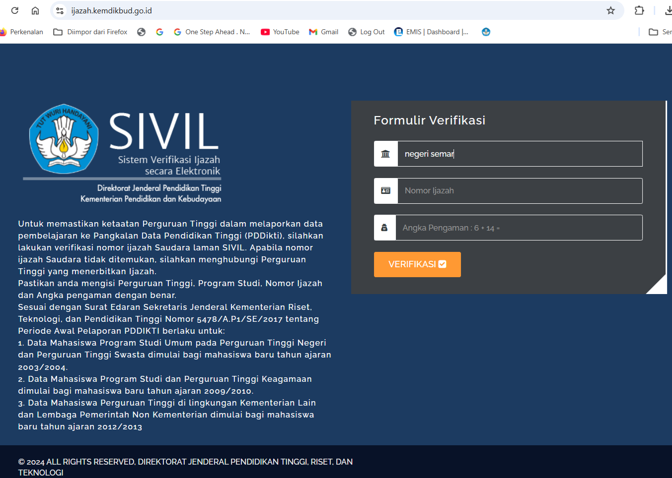 Setelah SIVIL lama tidak berfungsi, ternyata mengecek data lulusan perguruan tinggi dapat dilakukan di aplikasi PISN.