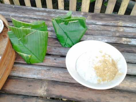 Kami membeli dalam bungkus pisang, untuk dimakan siang dan sore.