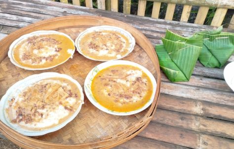 Kami pun segera bergegas menuju tempat penjual bubur lemu dengan membawa piring dari rumah, dan sebuat tampah.