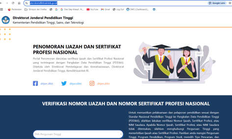Silakan masuk ke laman PISN dengan alamat link https://pisn.kemdiktisaintek.go.id/ kemudian gulung layar dibagian bawah terdapat formulir VERIFIKASI NOMOR IJAZAH DAN NOMOR SERTIFIKAT PROFESI NASIONAL.