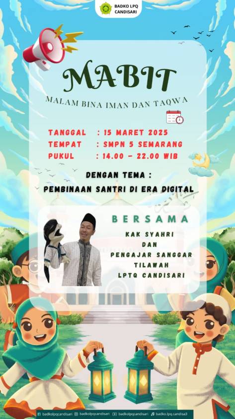 Informasi Mabit Ramadhan Badko LPQ Candisari Sabtu 15 Maret 2025 di SMPN 5 Semarang, Wonotingal