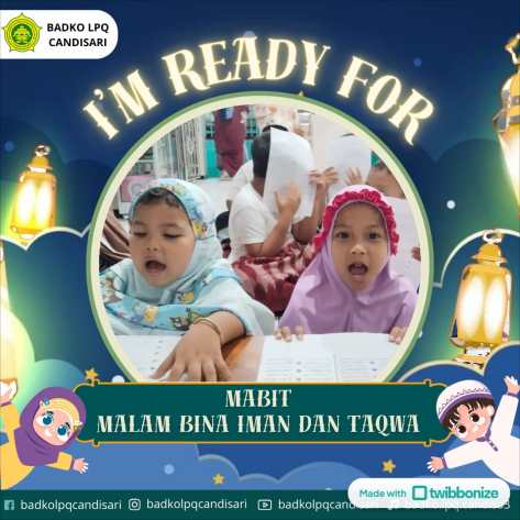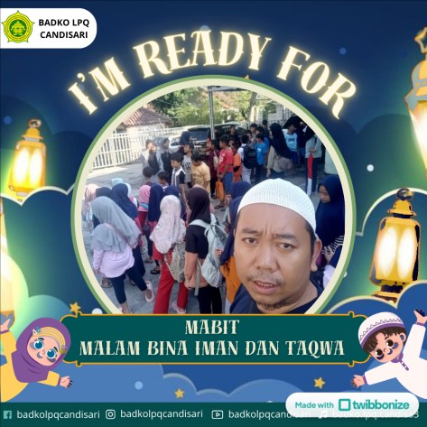 Kegiatan MABIT merupakan program kerja dari Badko LPQ Kecamatan Candisari Kota Semarang, yang diselenggarakan pada bulan suci Ramadan, dan diikuti oleh perwakilan santri LPQ se-Kecamatan Candisari. Demikian kata, Moh Zamroni, Ketua Badko LPQ Kecamatan Candisari.