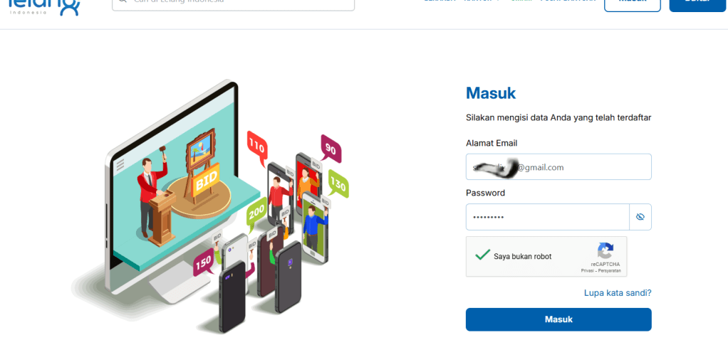 Usai Aktivasi Akun lelang go id silakan mencoba login dengan email dan password yang telah Anda buat.