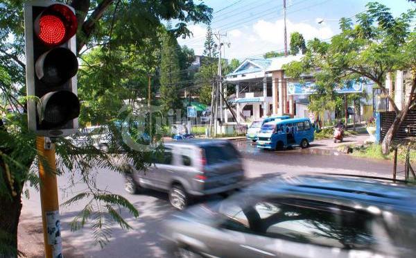 Polisi menghentikan laju mobil yang menerobos lampu merah, disebuah persimpangan jalan.